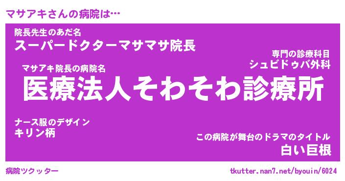 | 2回繰り返すあだ名 | 『マサマサ』『ママササ』『ぴんぴん』 |