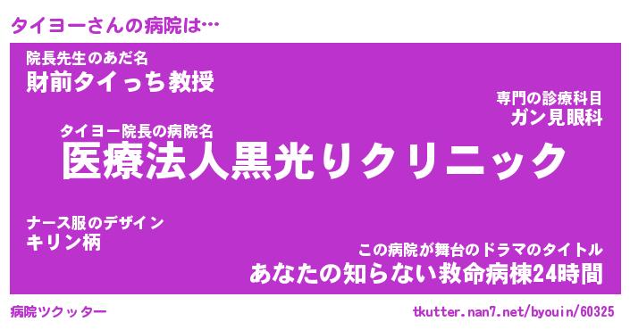 | 胡散臭い通販商品みたいなあだ名 | 『億万長者になれるブレスレット…その名も「タイヨー」』 |