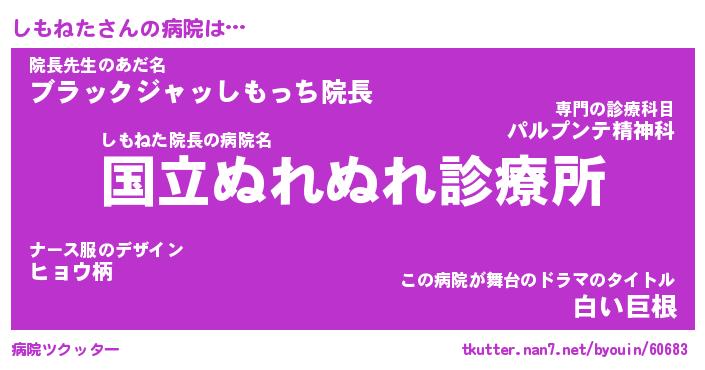 | 意味不明あだ名 | 『ペロリンしもねた』『永久保存しもねた』 |