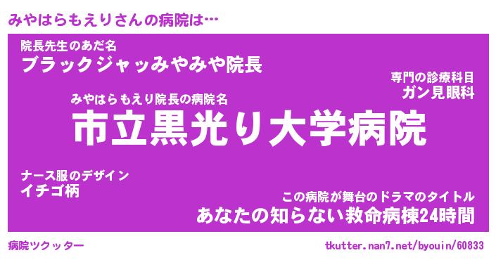 | 恥ずかしいあだ名 | 『プリティーみやはらもえり』『みやちん』 |