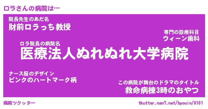| ヘコむあだ名 | 『ロラもー』『なまこ酢』『ロラ太郎』 |