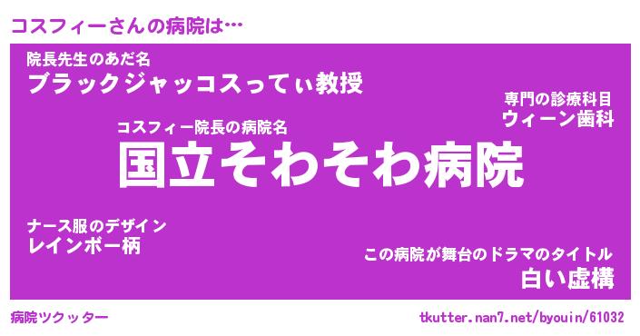 | 男性向けラノベタイトル風あだ名 | 『コスフィーの憂鬱』 |