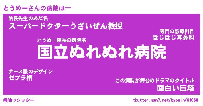 | 意味不明あだ名 | 『ペロリンとうめー』『永久保存とうめー』 |
