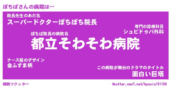 | 2回繰り返すあだ名 | 『ぽちぽち』『ぽぽちち』『いらいら』 |