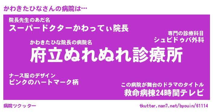 | ヒーロー風カッコイイあだ名 | 『スーパーカワキタヒナ』『炎刃騎士カワ』 |
