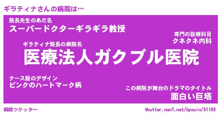| 2回繰り返すあだ名 | 『ギラギラ』『ギギララ』『うねうね』 |