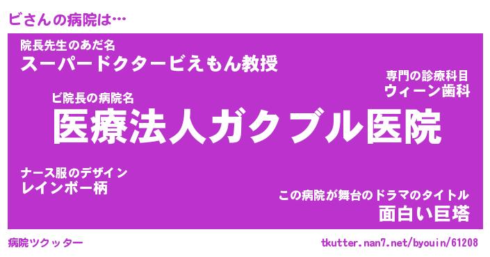 | 2回繰り返すあだ名 | 『ビビ』『ビビ』『にゅぷにゅぷ』 |
