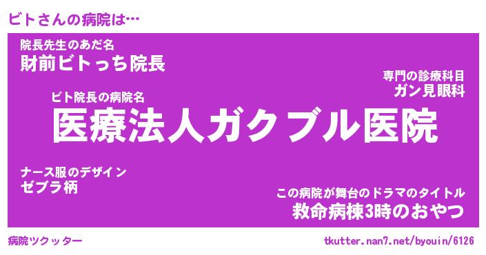 | 2回繰り返すあだ名 | 『ビトビト』『ビビトト』『げほげほ』 |