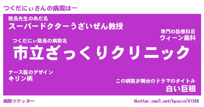 | ファンタジー風あだ名 | 『ツクフェル』『エターナルツクダニィー』 |