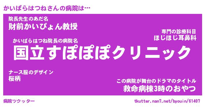 | 伝説のあだ名 | 『伝説のスナイパーかいばらはつね』 |