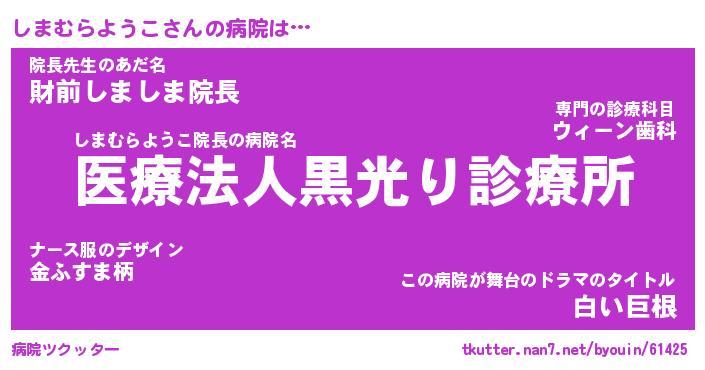 | ツイッター | しまむらようこさんのツイッターID『fukuyoka_man』 |
