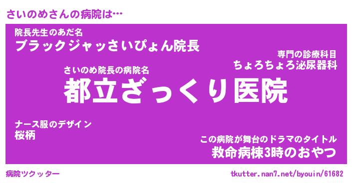 | 意味不明あだ名 | 『ペロリンさいのめ』『永久保存さいのめ』 |