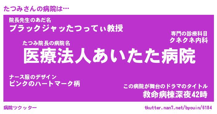 | ヘコむあだ名 | 『たつっふぃ~』『なまこ酢』 |