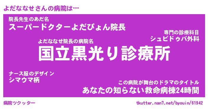 | 男性向けラノベタイトル風あだ名 | 『よだななせの憂鬱』 |