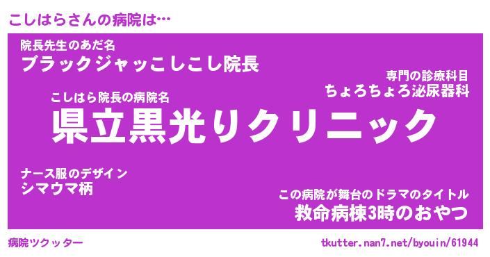 | ファンタジー風あだ名 | 『コシフェル』『エターナルコシハラー』 |