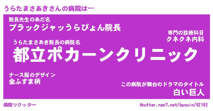 | 恥ずかしいあだ名 | 『プリティーうらたまさあき』『うらちん』 |