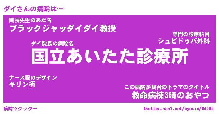 | ポケモン風あだ名 | 『ダイチュウ』『ダイダネ』『ヒダイ』 |