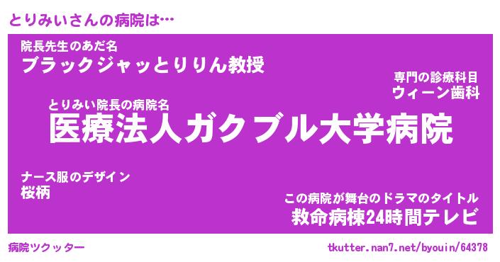 | ポケモン風あだ名 | 『トリチュウ』『トリミダネ』 |