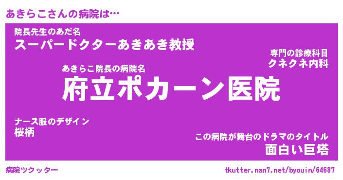 | 意味不明あだ名 | 『ペロリンあきらこ』『永久保存あきらこ』 |