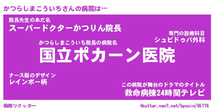 | 男性向けラノベタイトル風あだ名 | 『かつらしまこういちの憂鬱』 |