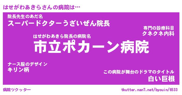 | ピコ太郎風あだ名 | 『ハコ四郎』『ピハ八郎』『ハセ五郎』 |