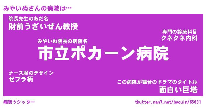 | 意味不明あだ名 | 『ペロリンみやいぬ』『永久保存みやいぬ』 |