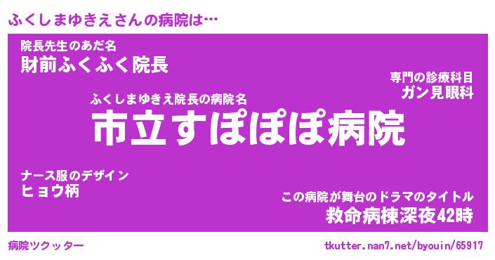 | 伝説のあだ名 | 『伝説のスナイパーふくしまゆきえ』 |