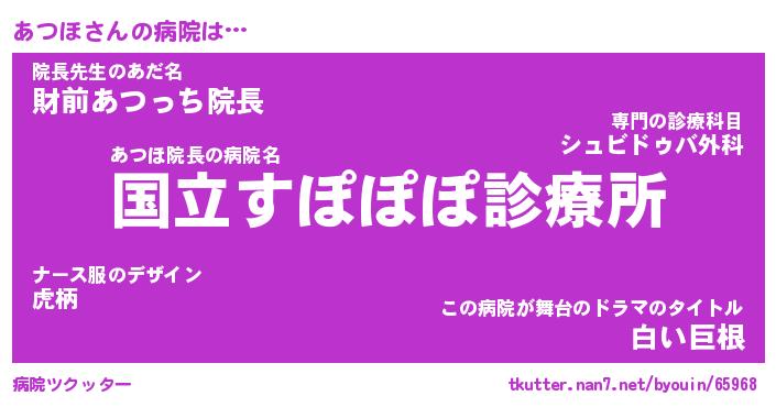 | 伝説のあだ名 | 『伝説のスナイパーあつほ』 |