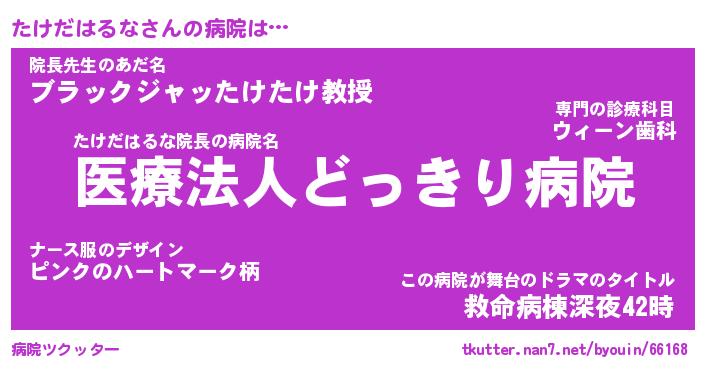 | ヒーロー風カッコイイあだ名 | 『スーパータケダハルナ』『幻影騎士タケ』 |