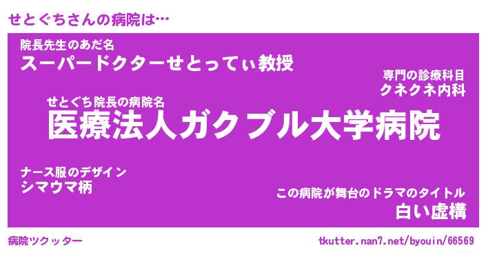 | 意味不明あだ名 | 『ペロリンせとぐち』『永久保存せとぐち』 |