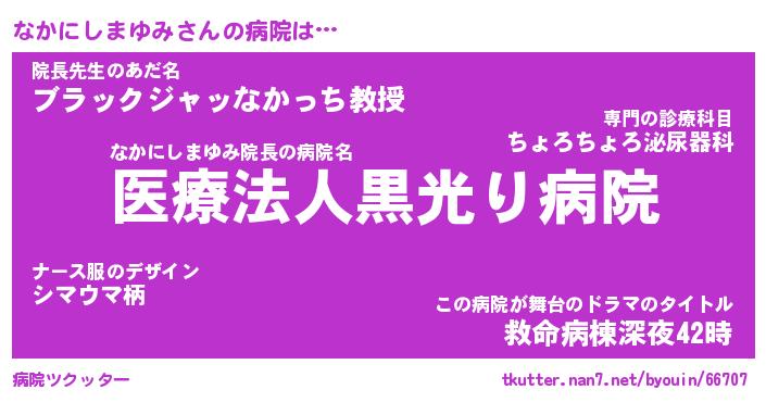 | 胡散臭い通販商品みたいなあだ名 | 『億万長者になれるブレスレット…その名も「なかにしまゆみ」』 |