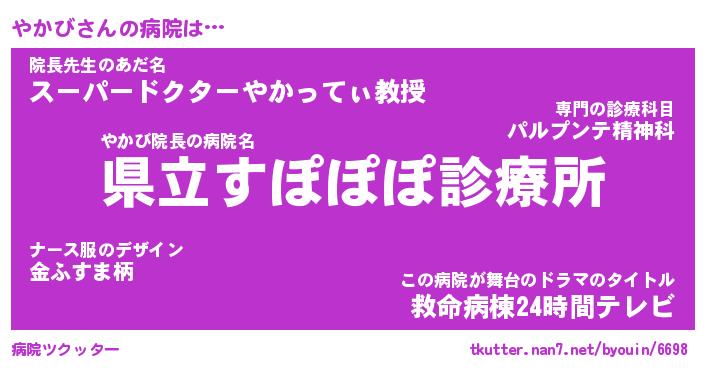 | ピコ太郎風あだ名 | 『ヤコ六郎』『ピヤ四郎』『ヤカ五郎』 |