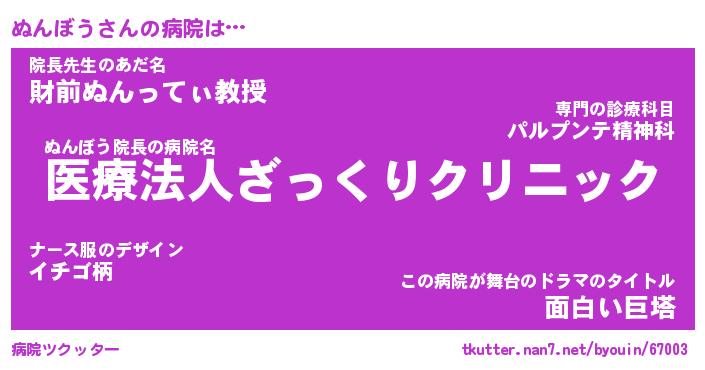 | ポケモン風あだ名 | 『ヌンチュウ』『ヌンボダネ』 |