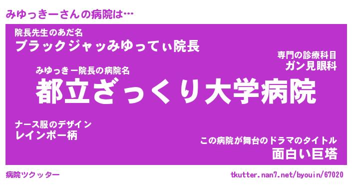 | ファンタジー風あだ名 | 『ミユフェル』『エターナルミユッキーー』 |