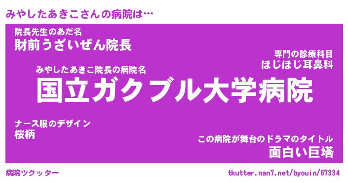 | 男性向けラノベタイトル風あだ名 | 『みやしたあきこの憂鬱』 |