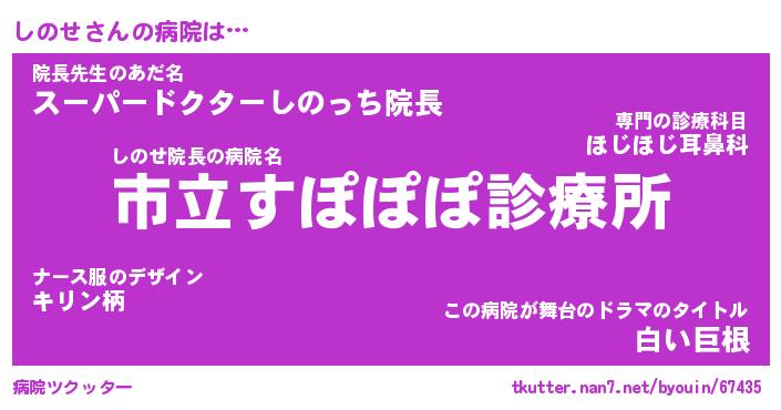 | 伝説のあだ名 | 『伝説のスナイパーしのせ』 |