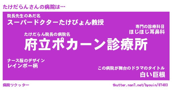 | ポケモン風あだ名 | 『タケチュウ』『タケダダネ』 |