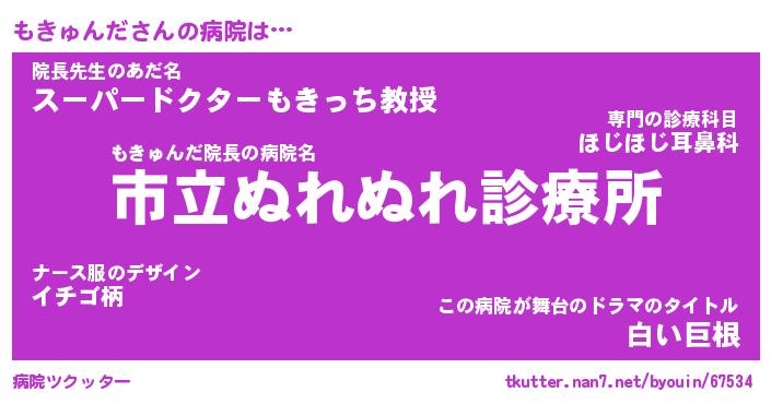 | 男性向けラノベタイトル風あだ名 | 『もきゅんだの憂鬱』 |