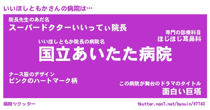 | 恥ずかしいあだ名 | 『プリティーいいほしともか』『いいちん』 |