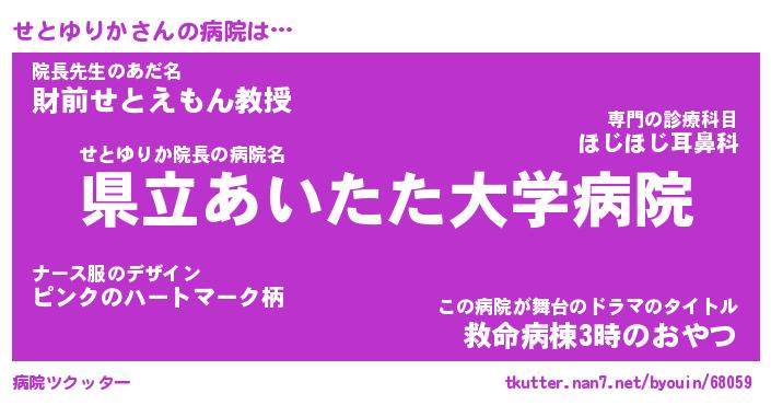 | 肩書あだ名 | 『せとゆりか御曹司』『せとゆりか班長』 |