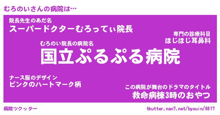 | 男性向けラノベタイトル風あだ名 | 『むろのいの憂鬱』 |