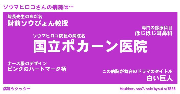 | ヒーロー風カッコイイあだ名 | 『スーパーソウマヒロコ』『幻影騎士ソウ』 |