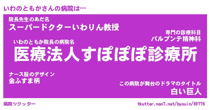| ヒーロー風カッコイイあだ名 | 『スーパーイワノトモカ』『暗黒騎士イワ』 |