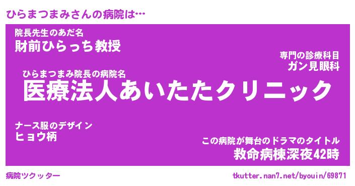 | 自動車の名前っぽいあだ名 | 『ヒラティマ』『ヒクア』『ヒント』 |