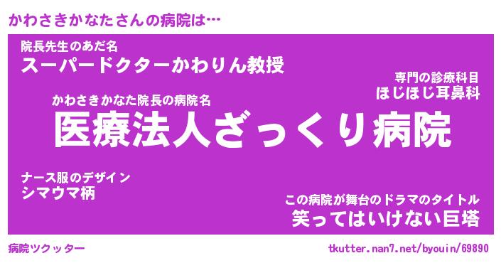 | 胡散臭い通販商品みたいなあだ名 | 『モテモテ間違いなし霊験あらたかなお札…その名も「かわさきかなた」』 |