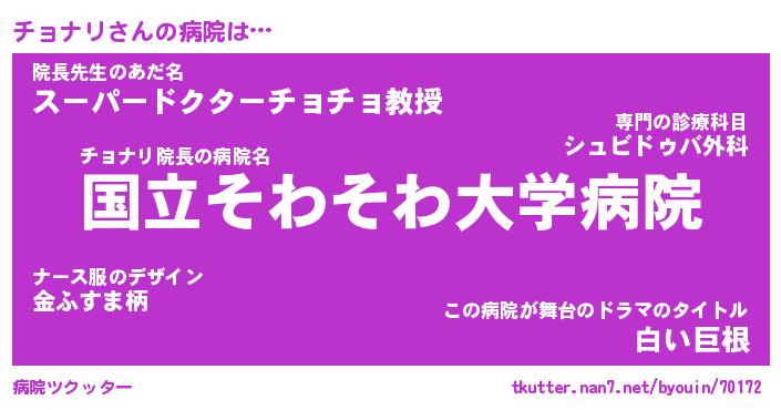 | ヒーロー風カッコイイあだ名 | 『スーパーチョナリ』『魔戒騎士チョ』 |