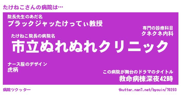 | 意味不明あだ名 | 『ペロリンたけねこ』『永久保存たけねこ』 |