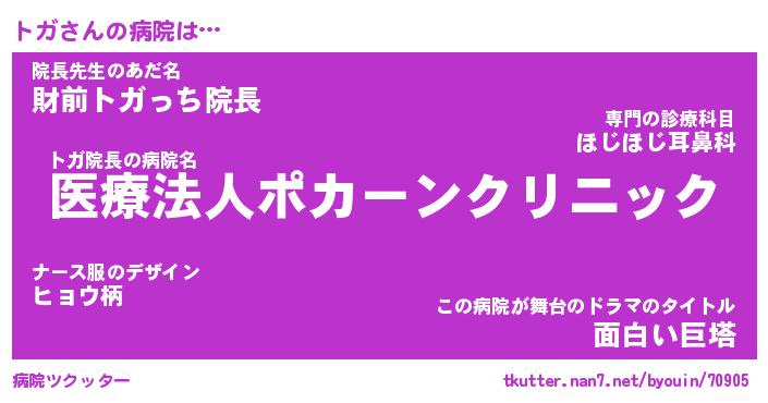 | 2回繰り返すあだ名 | 『トガトガ』『トトガガ』『おやおや』 |