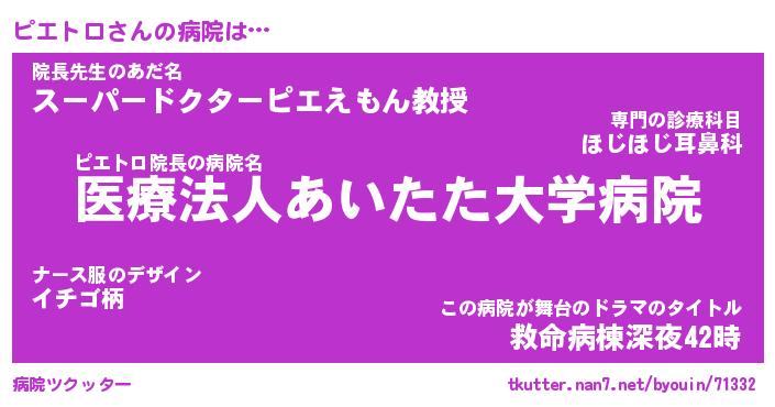 | 意味不明あだ名 | 『ペロリンピエトロ』『永久保存ピエトロ』 |