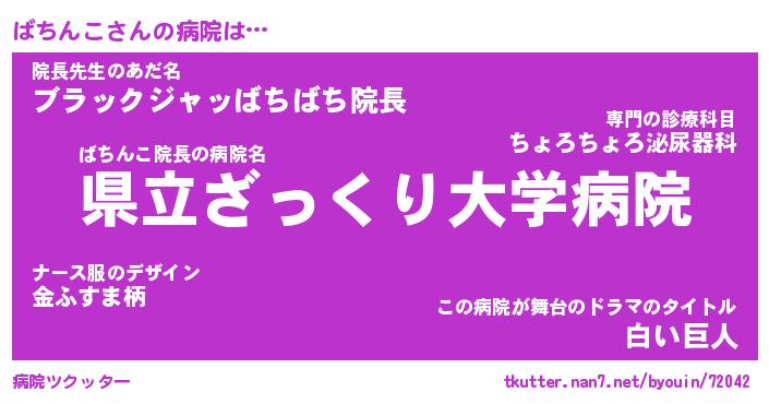 | 男性向けラノベタイトル風あだ名 | 『ばちんこの憂鬱』 |